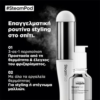 To L’Oreal Professionnel SteamPod Smoothing Treatment είναι μια θεραπεία λείανσης μαλλιών σε μορφή serum