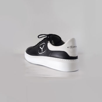 Ανατομικά δερμάτινα παπούτσια σε μαύρο χρώμα με λευκή λεπτομέρεια!